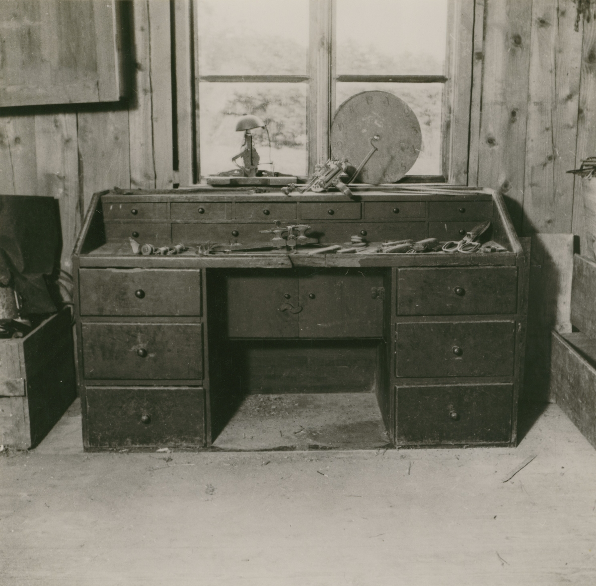 Urmakareverkstad i Korparyd, nu i defekt skick. Den siste klockemakaren på gården var den nuvarande (1936) ägarens farfar.