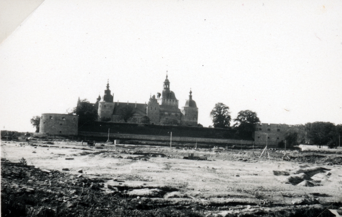 Kalmar slott vid utgrävningarna av Slottsfjärden 1932-1934.