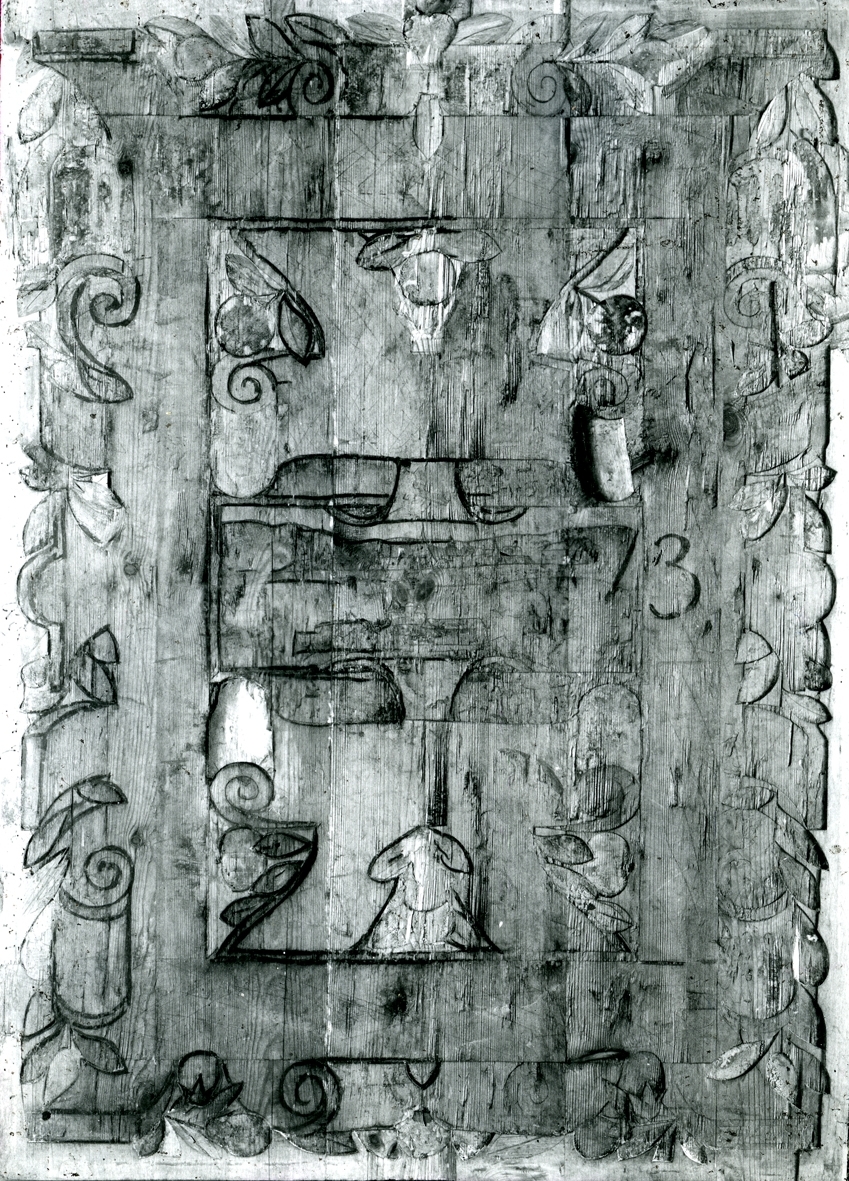 Titel: Kalmar slott: Detalj av Kungsmakets panel. Orginalpannån. På vissa plåtar har Martin Olsson klistrat eltejp för att markera hur bilden skulle beskäras i boken.