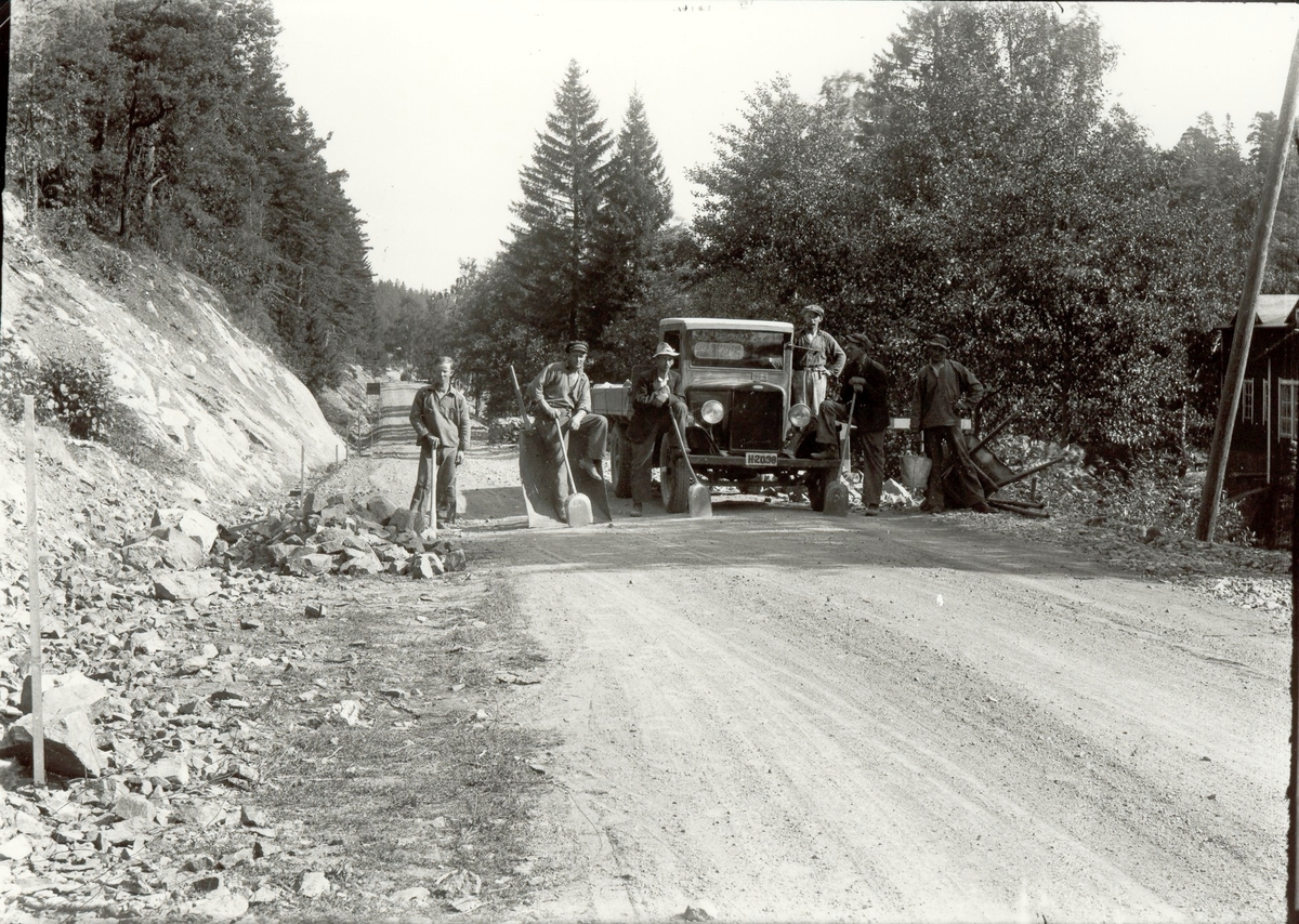 Arbete pågår med att bygga en väg någonstans i Hjorted.