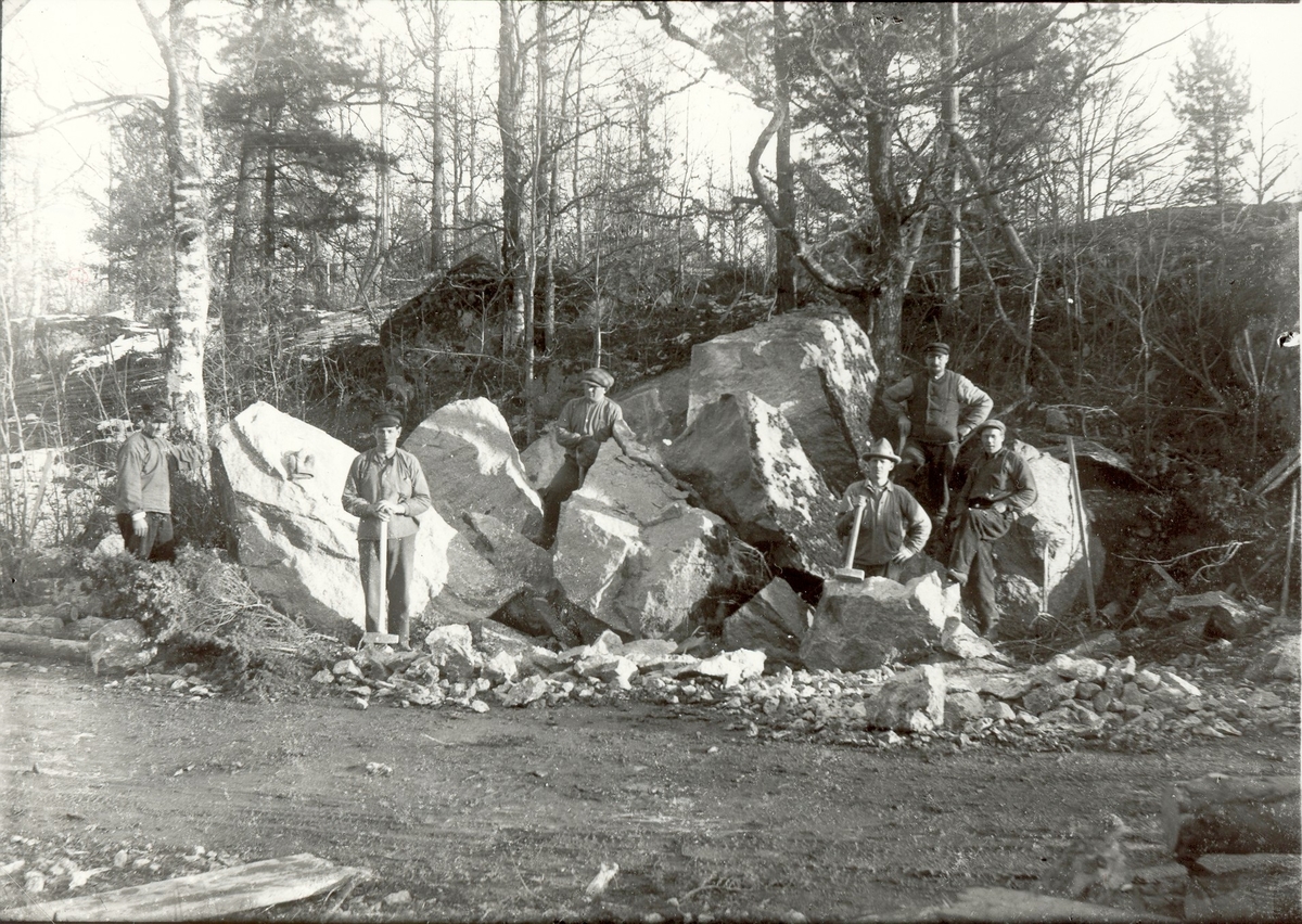 Sönderdelning av ett stort flyttblock med anledning av ett vägbygge 1932.