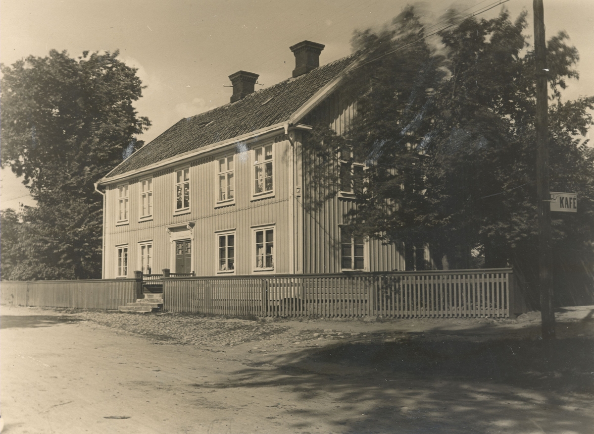 Gamla apoteket i Söderåkra. Vitmålat. (Gård med röda timmerflyglar).