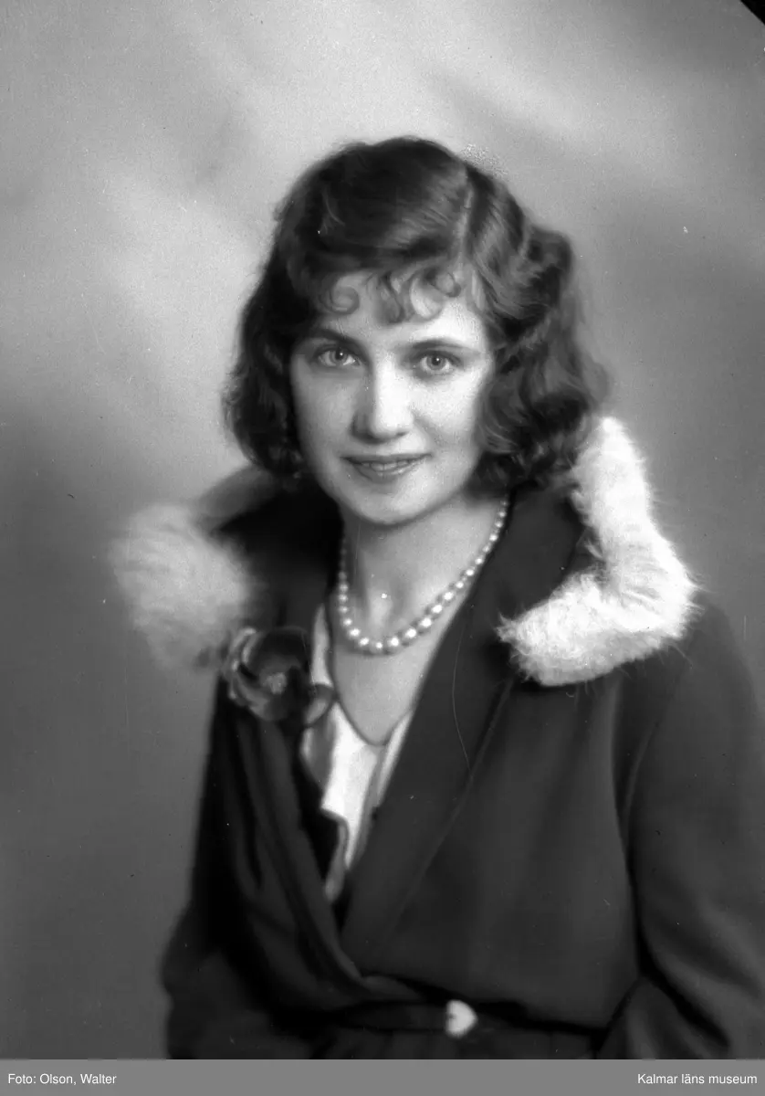 Ateljébild på en kvinna i kappa. Enligt Walter Olsons journal är bilden beställd av Anna-Lisa Lingström.