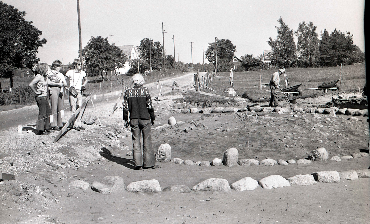 Arkeologiska undersökningar 1974 vid Gåtebo med Kent Holgersson med ryggen till.