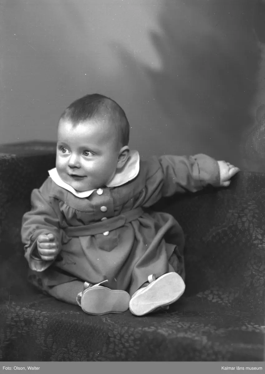 Ateljéfoto. Sittande baby. Beställare till bilden är Albert Andersson.