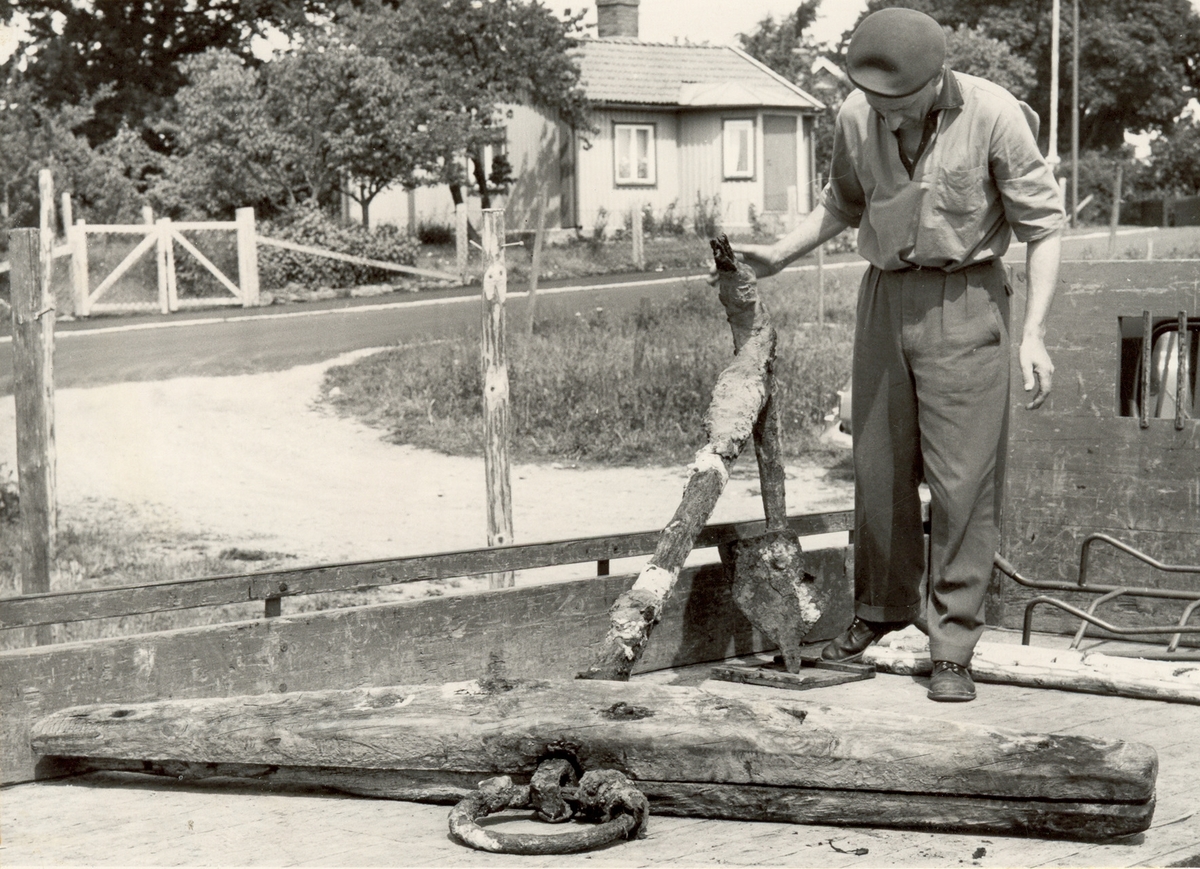 Ankaret upphittat vid Stensö fiskehamn vid uppmuddringen 1962.