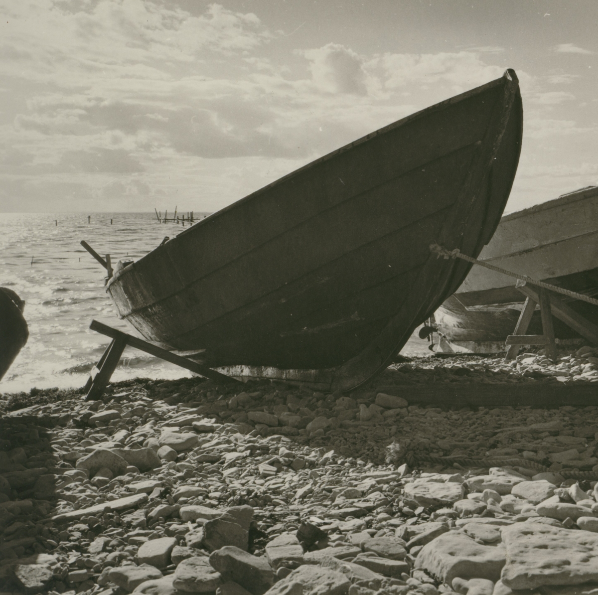 Ölandsbåtar på stranden i Äleklinta.