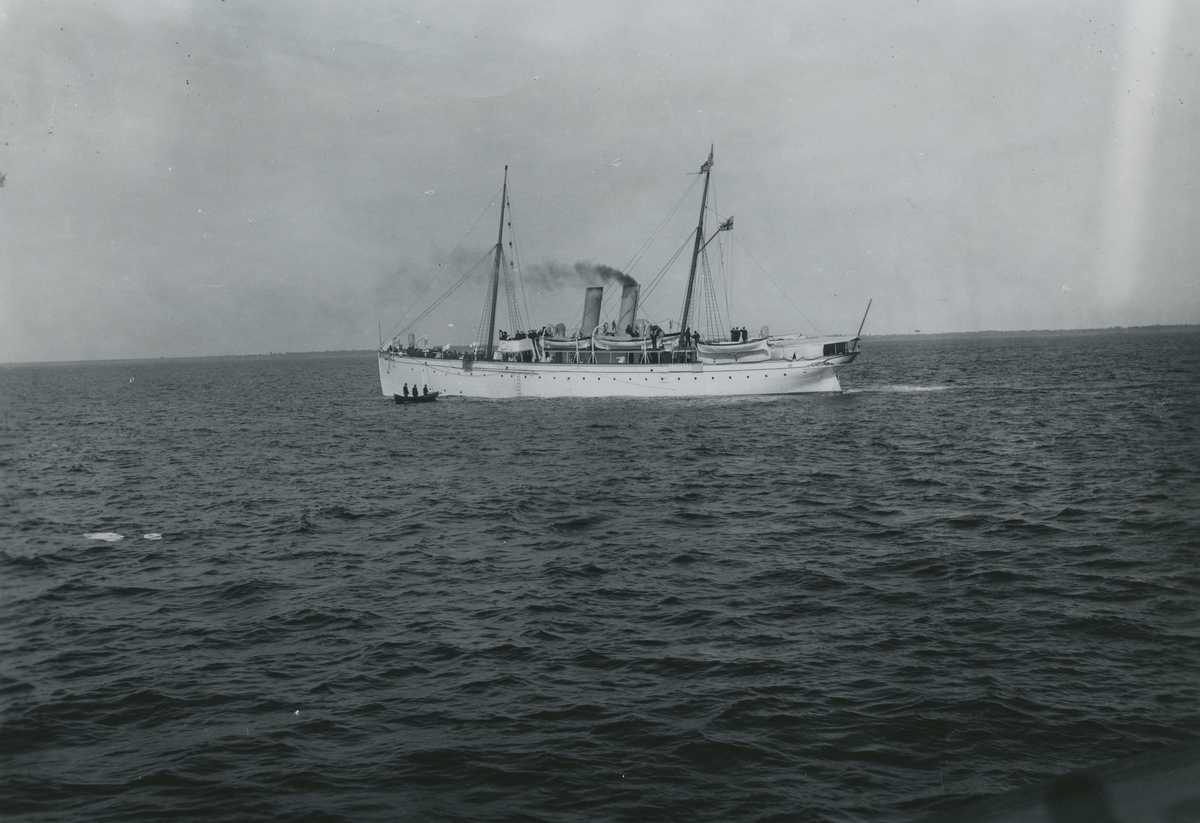Konung Gustaf V.s och Drottning Victorias besök i Kalmar 1910. Det kungliga fartyget Drott.