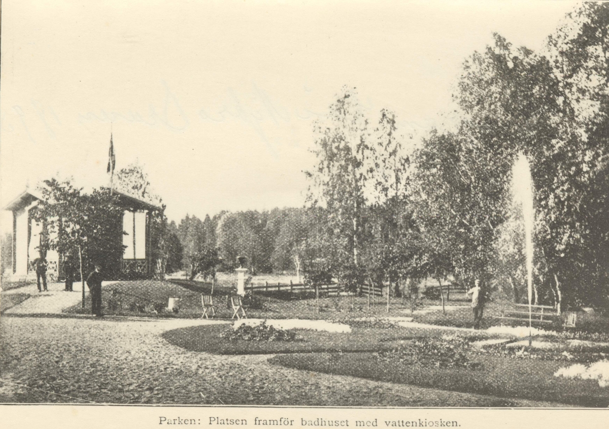Vykort med motiv från Badhusparken under brunnsepoken.