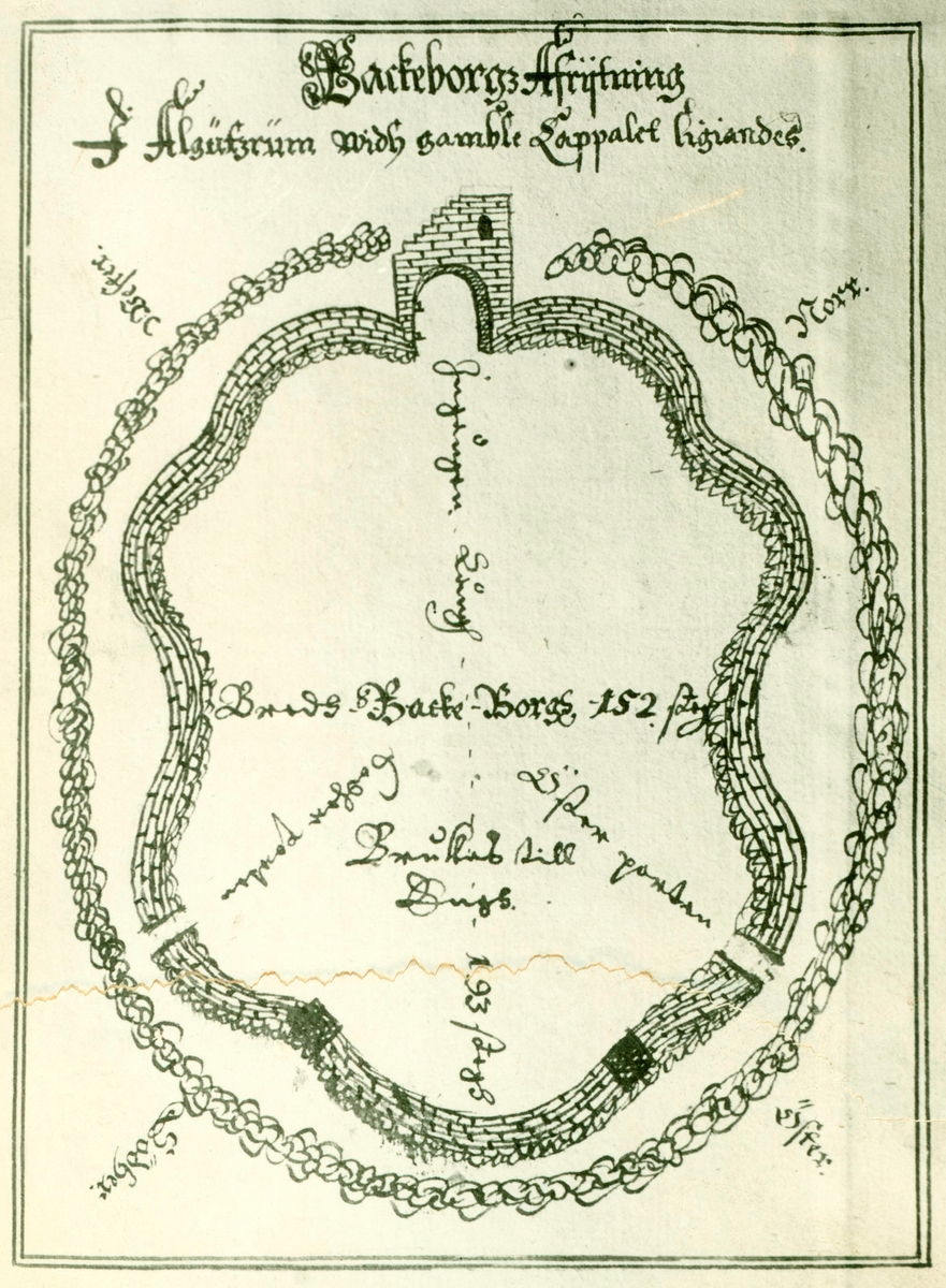 Efter en teckning av J.H. Rhezelius i hans monumenta oelandica, 1634. Gråborg.