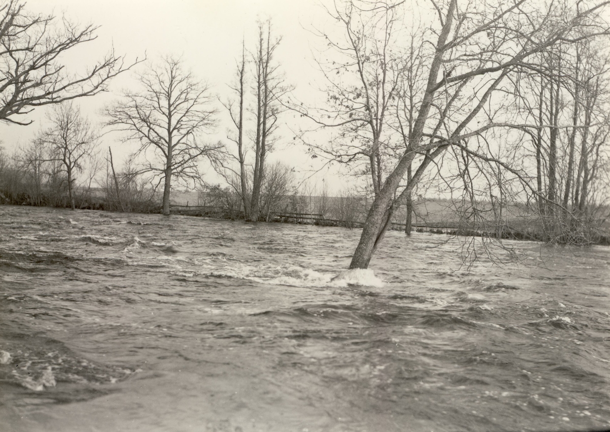 Titel: Översvämning av Ljungbyån mellan Ljungbyholm och Hossmo, våren 1929.