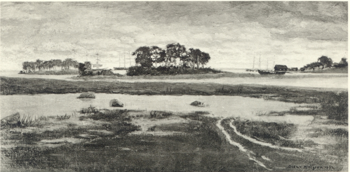 Målning av Oscar Hullgren med motiv från Pataholm.