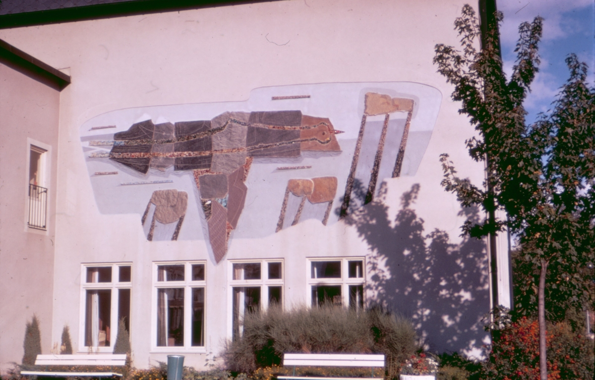 Ett konstverk på en fasad i Västervik.