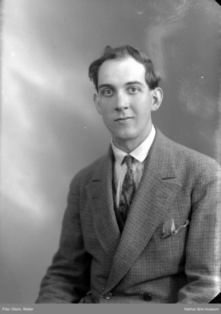 Ateljébild på en man. Enligt Walter Olsons journal är bilden beställd av Hilding Svensson.