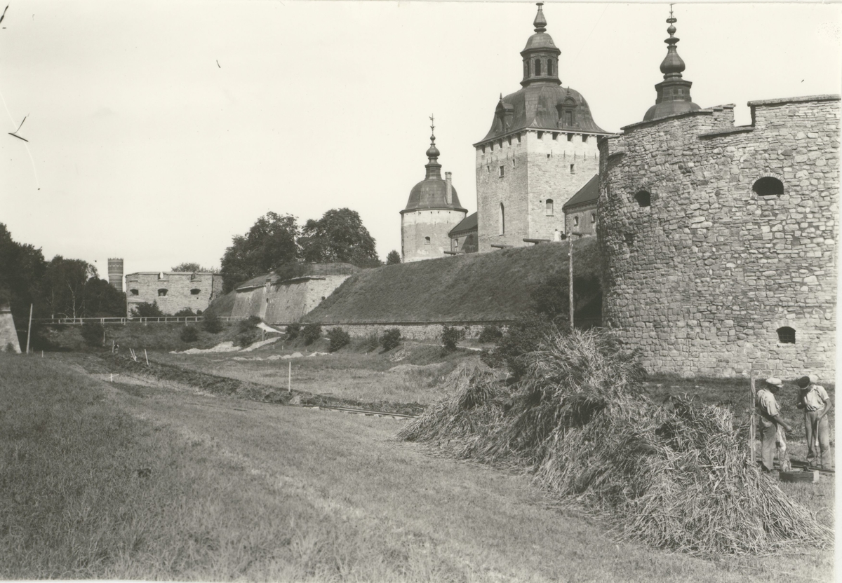 Kalmar slott 1932 då arbetet börjades med utgrävningen av vallgraven.
