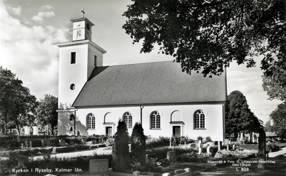 Titel: Kyrkan i Rockneby i Ryssby socken. Denna kyrka brann 2001 men återuppbyggdes senare.