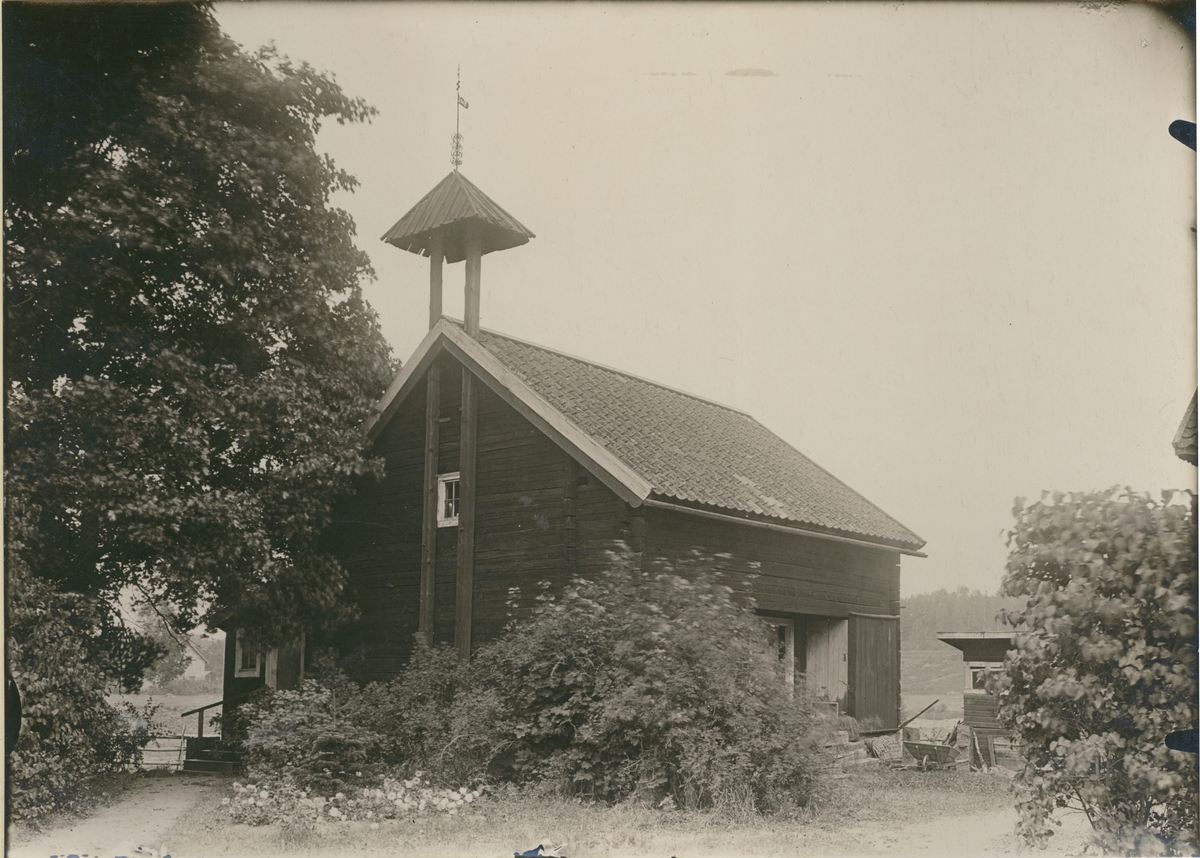 Loftbod med vällingklocka. Smidd spira av 1600-talsform. I flöjeln årtalet 1662. Källare under huset.