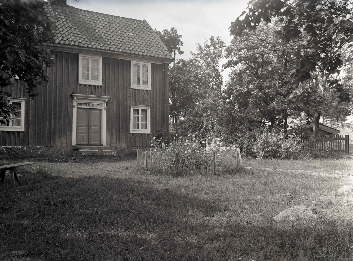 En mangårdsbyggnad med stengrund, träfasad och tegeltak.