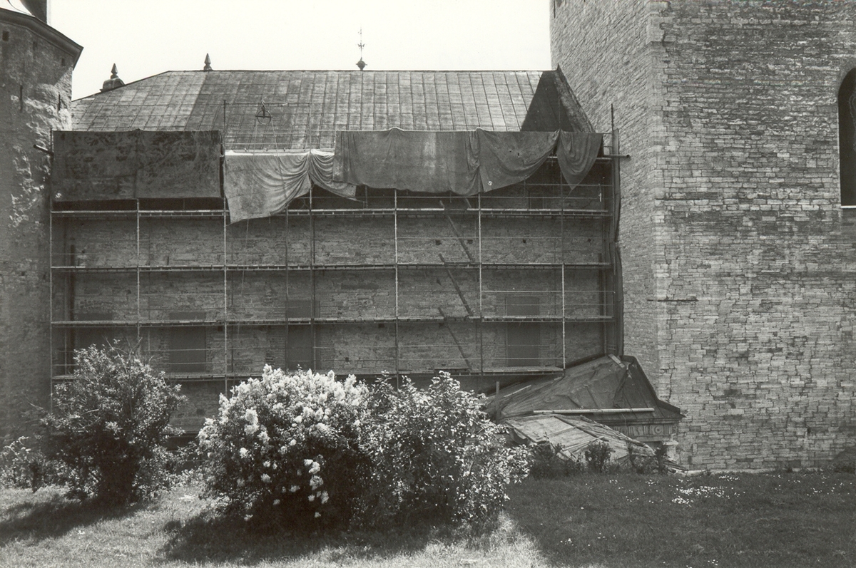 Västra fasadens norra del mellan Kungsmakstornet och Kuretornet.