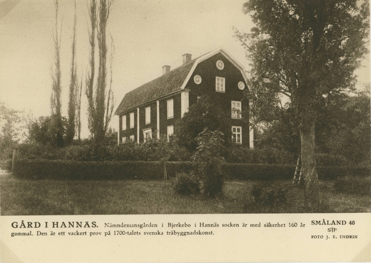Gård i Hannäs. Nämndemansgården i Bjerkebo i Hannäs socken är med säkerhet 160 år gammal. Den är ett vackert prov på 1700-talets träbyggnadskonst.