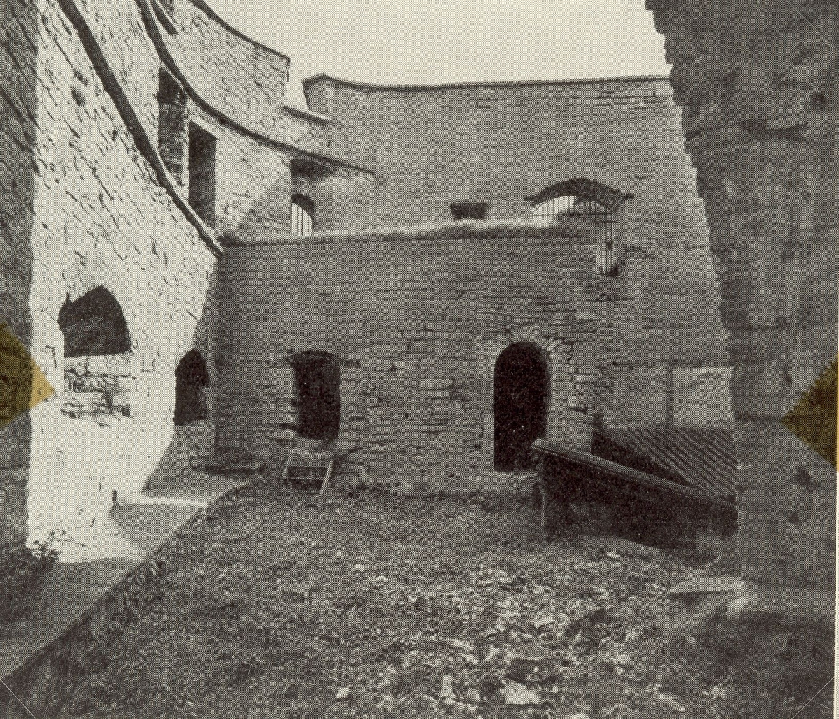 Kalmar slott. Postej med stenfasad. Yttre borggården.