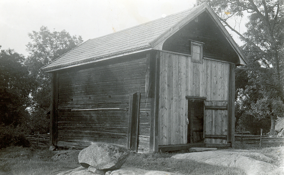 Bod på Karl Fredrik Jakobssons ägor, dedd från söder. Längd frånsett knutar 6,70 m. Bredd frånsett knutar 4,20 m.