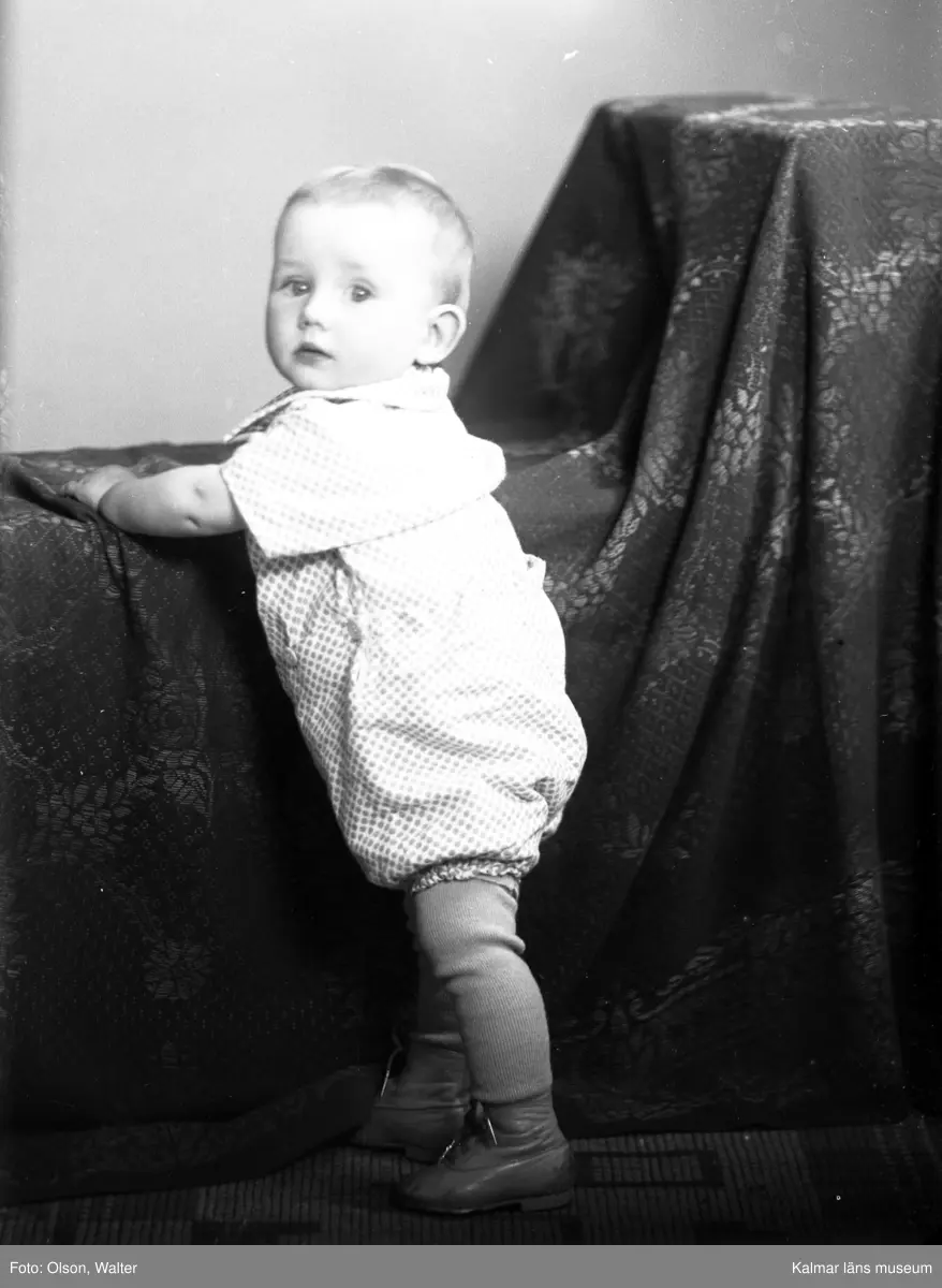 Ateljébild på ett barn i lekdräkt. Enligt Walter Olsons journal är bilden beställd av Egon Andersson.