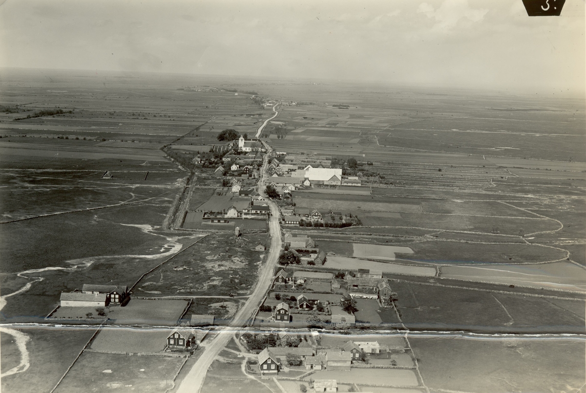 Hulterstad från söder. Hulterstads kyrka skönjs i bildens mellanplan.