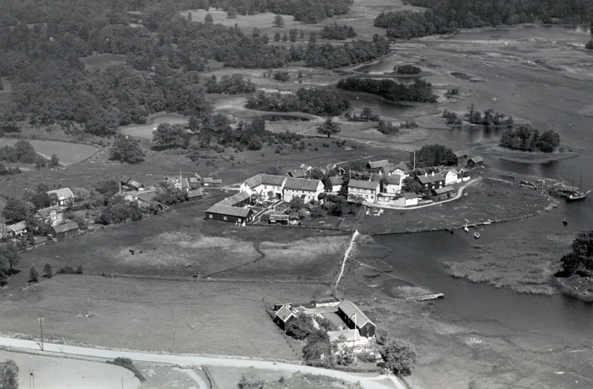 Flygfoto över Mönsterås kyrka, taget 1935.
