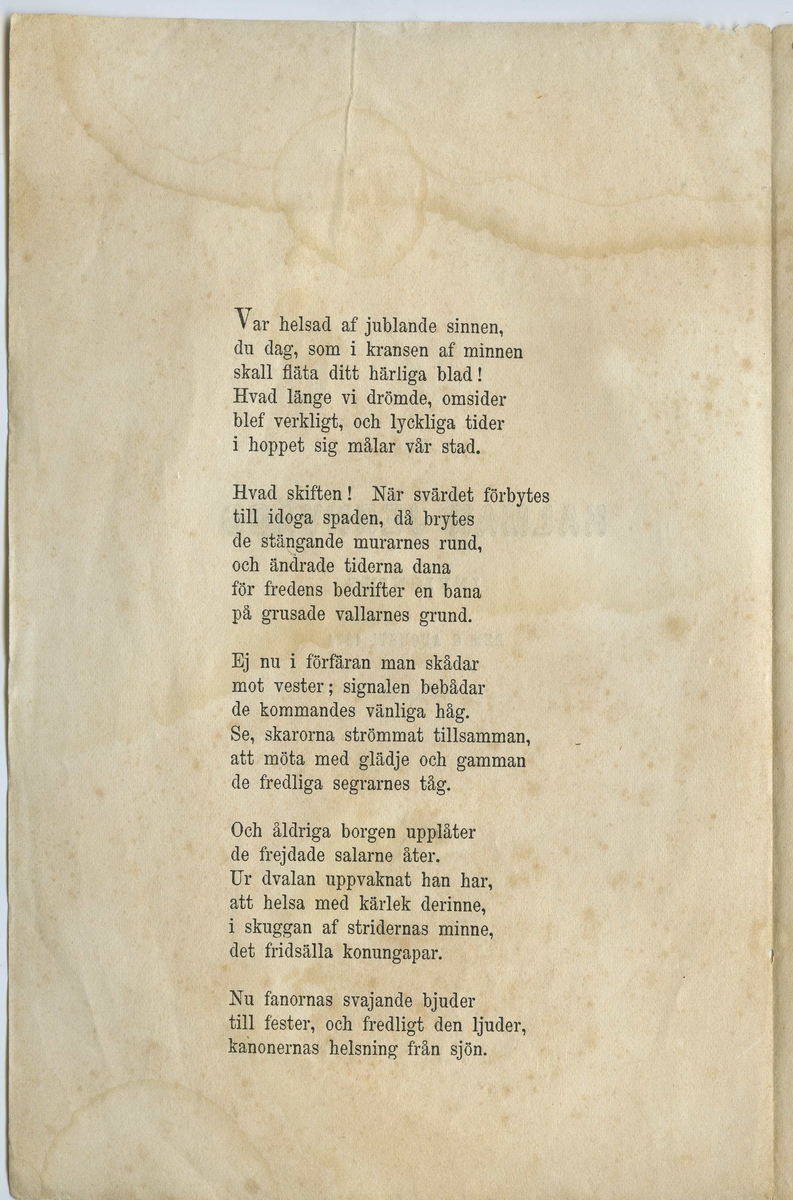 Vid Kalmar Jernvägs invigning den 8 augusti 1874. Kalmar 1874 Westrinska boktryckeriet.