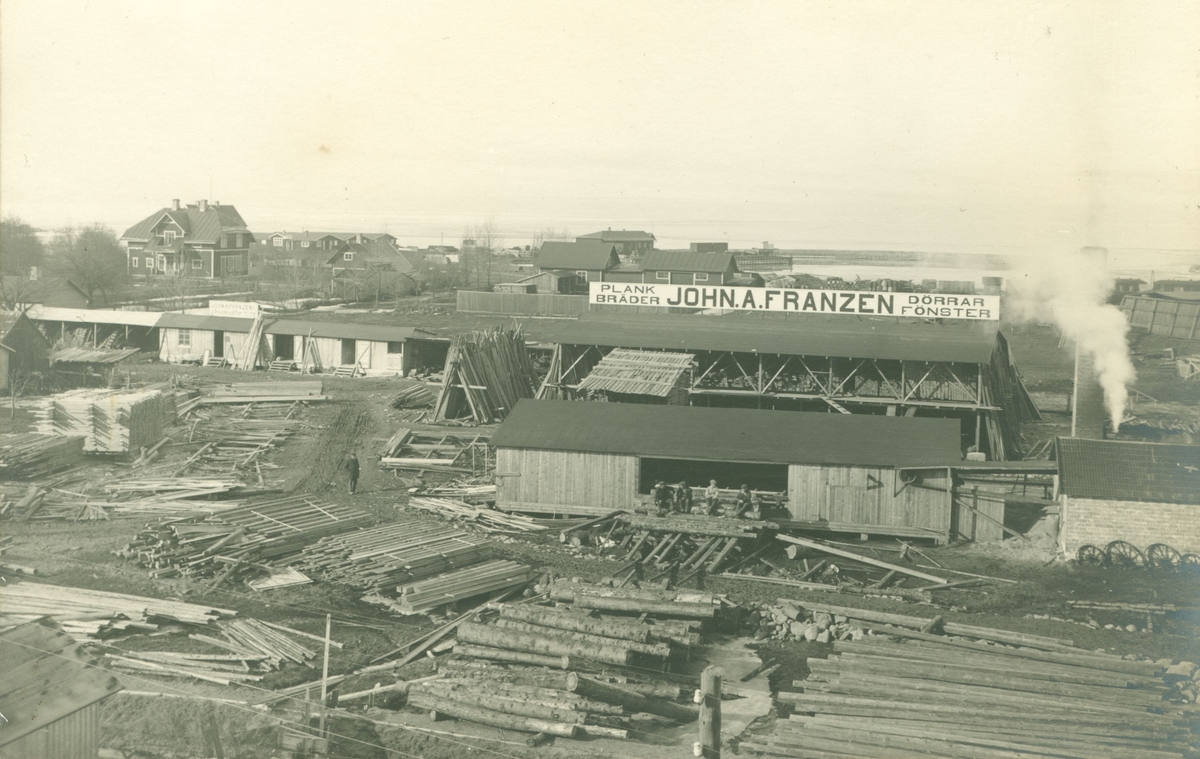 Vy över John A. Franzéns sågverk i Färjestaden.