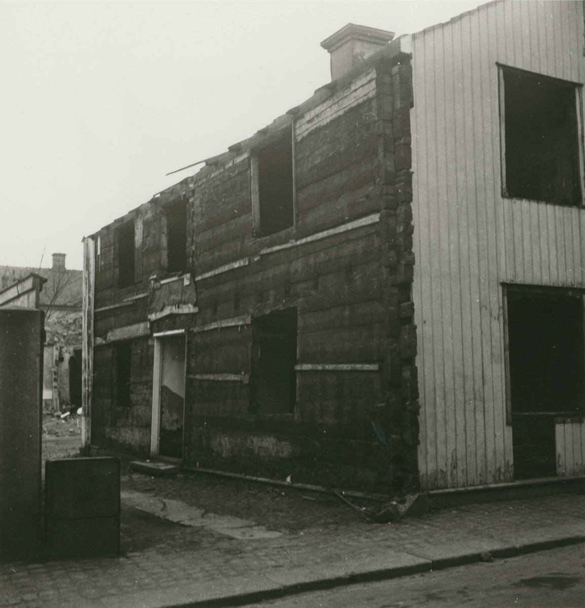 Bostadshus under rivning eller renovering i kvarteret Laken.