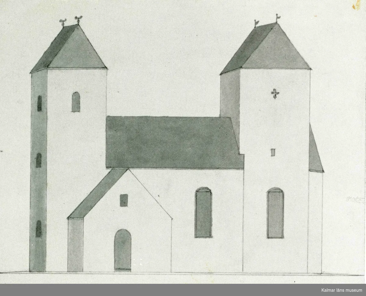 Teckning av Alböke kyrka.