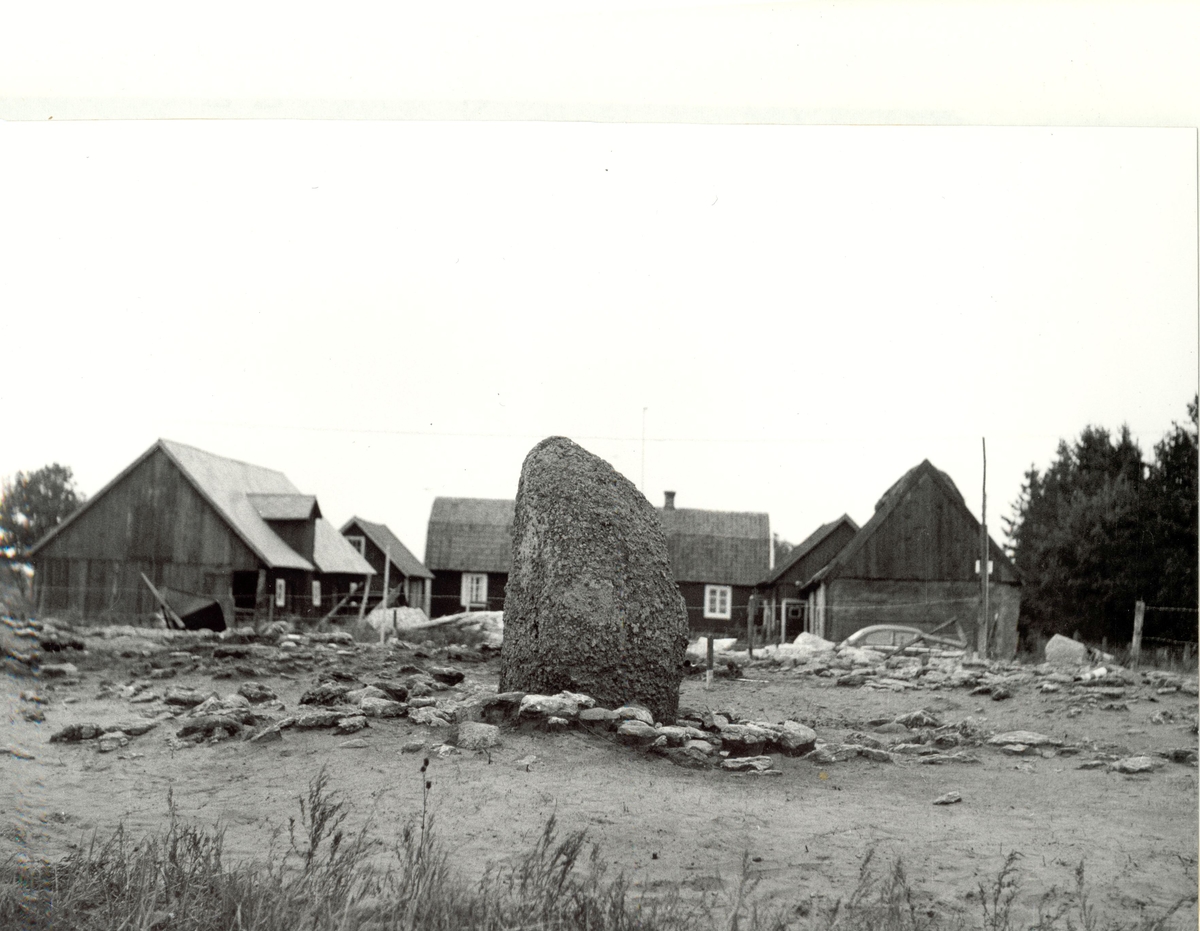 Bautasten i muren A14. I bakgrunden tillsyningsman Olle Olssons gård.