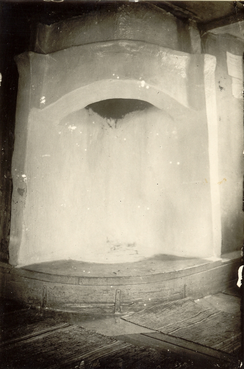 Öppen spis med spiselhylla i Södra Kvill.