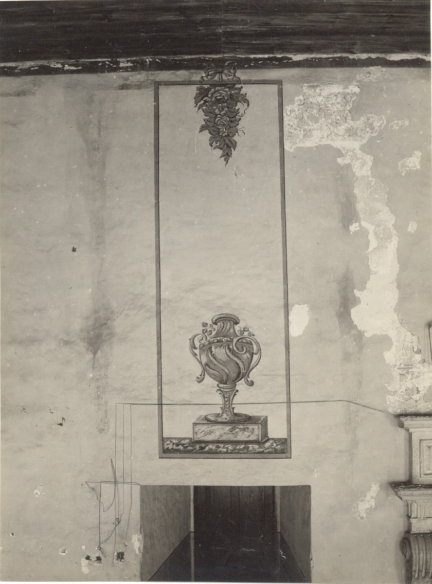 Drottningsalen i Kalmar slott. Kalkmålning från 1770-talet på västra väggen. Senare borttagen.