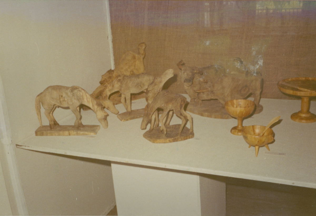 Träskulpturer vid utställningen Former i trä på Kalmar konstmusem.