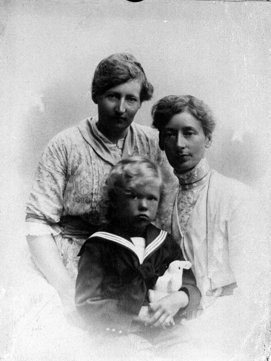 Grupporträtt på en kvinna med barn.