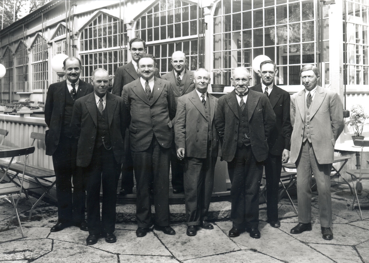 Medlemmar ur jordbrukarförening som sammanträtt på Teatern avbildade på Teatervallen.