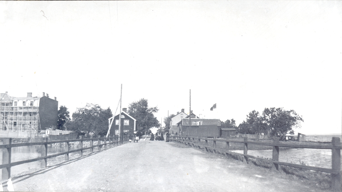 Den första träbron till Ängö. Innan den fanns kunde man bara ta sig mellan Ängö och Kvarnholmen med båt.