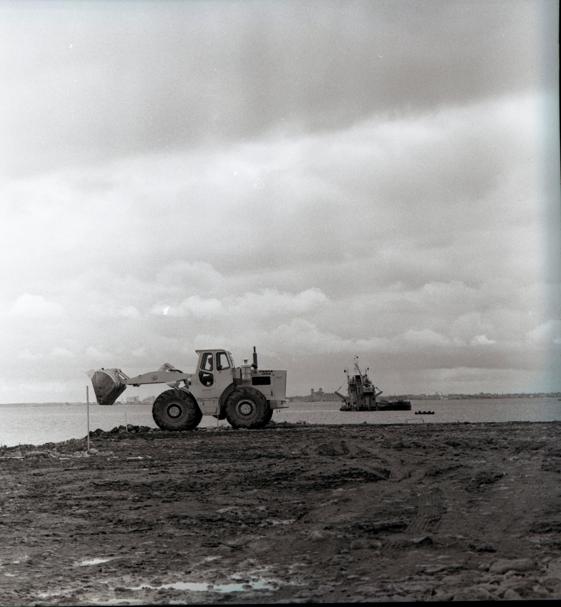 Vy från byggandet av Ölandsbron. På andra sidan sundet skymtar Kalmar.