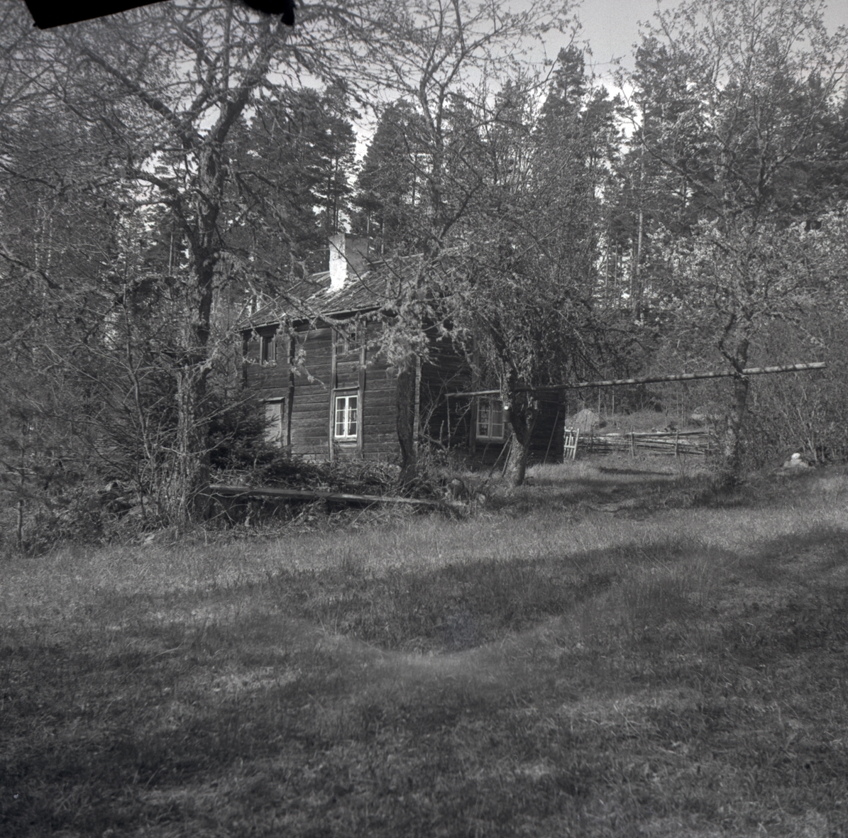 En timmerstuga med knuttimmer i Sandliden.