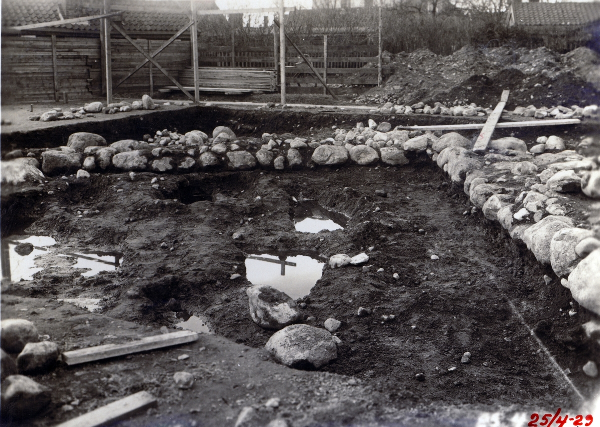 Titel: 25 april 1929. Arkeologisk utgrävning i kvarteret Kastanjen.