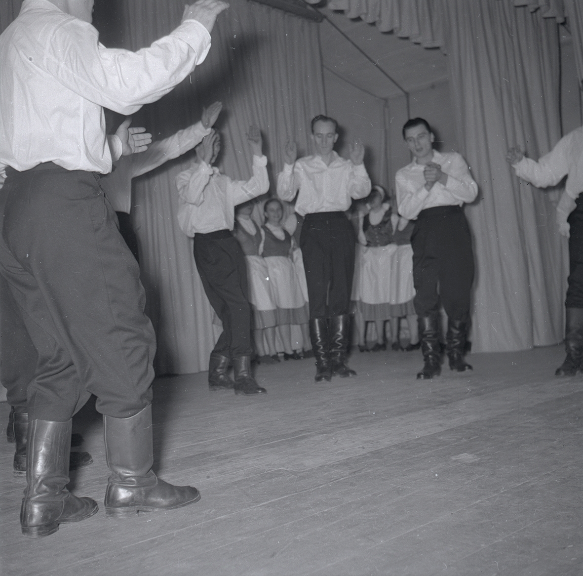 Bild tagen i samband med flyktingar ifrån Ungern 1956. Män som dansar. Förmodligen i Godtemplargården i Borgholm. Hösten 56 - våren 57.