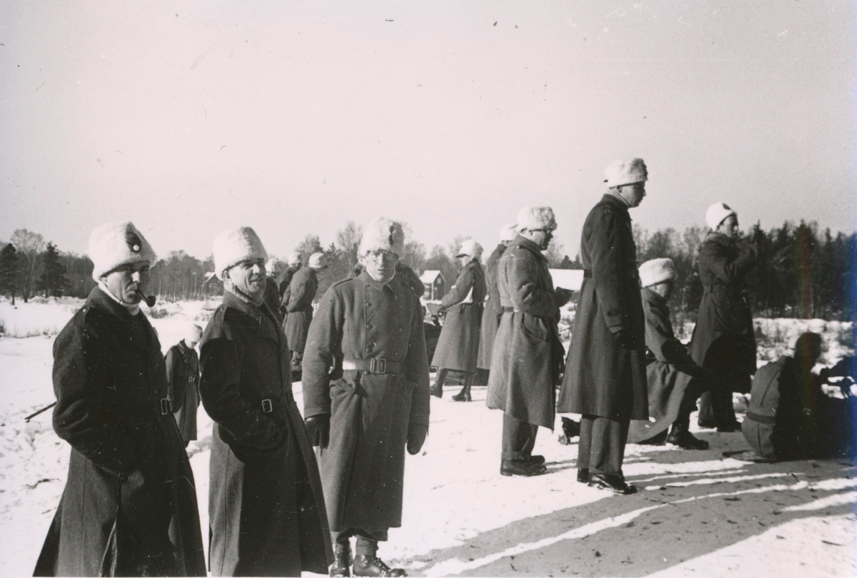 Militärövning i Kalmar 1941. Skjutning med kulsprutepistol.