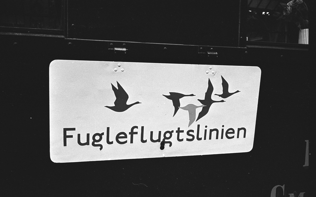 Titel: Invigning av "Fågelvägslinjen" mellan Rodbyhavn, Lolland, Danmark och Puttgarden, Fehmarn, Tyskland. Den nya färjelinjen kallas "Fågelvägslinjen", på danska Fugleflugtslinien och på tyska Vogelflugslinie, eftersom linjen följer flyttfåglarnas flygrutt