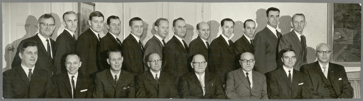 Grupporträtt av 20 av de totalt 29 förslagsställare som belönades av Trafikaktiebolaget GrängesbergOxelösunds Järnvägar för förslag lagda under 1966.