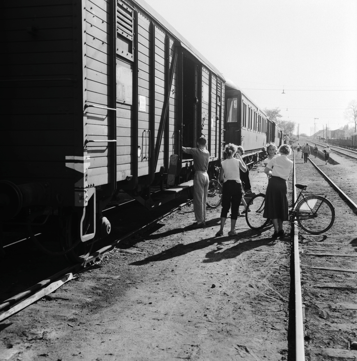 Statens Järnvägar, SJ Tåghem. Cykelvagn SJ F6 därefter vagnen SJ Ao1d 4104-4107.