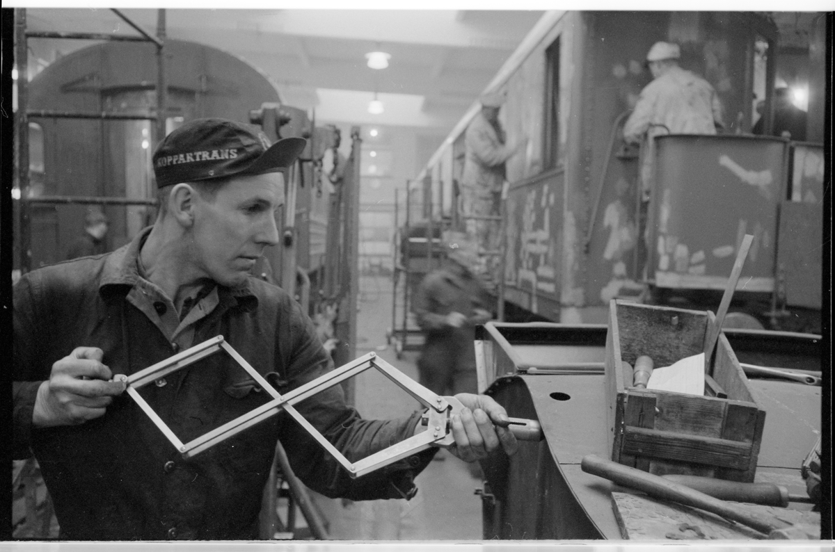 Titel: Statens Järnvägar, SJ personvagnar monteras.