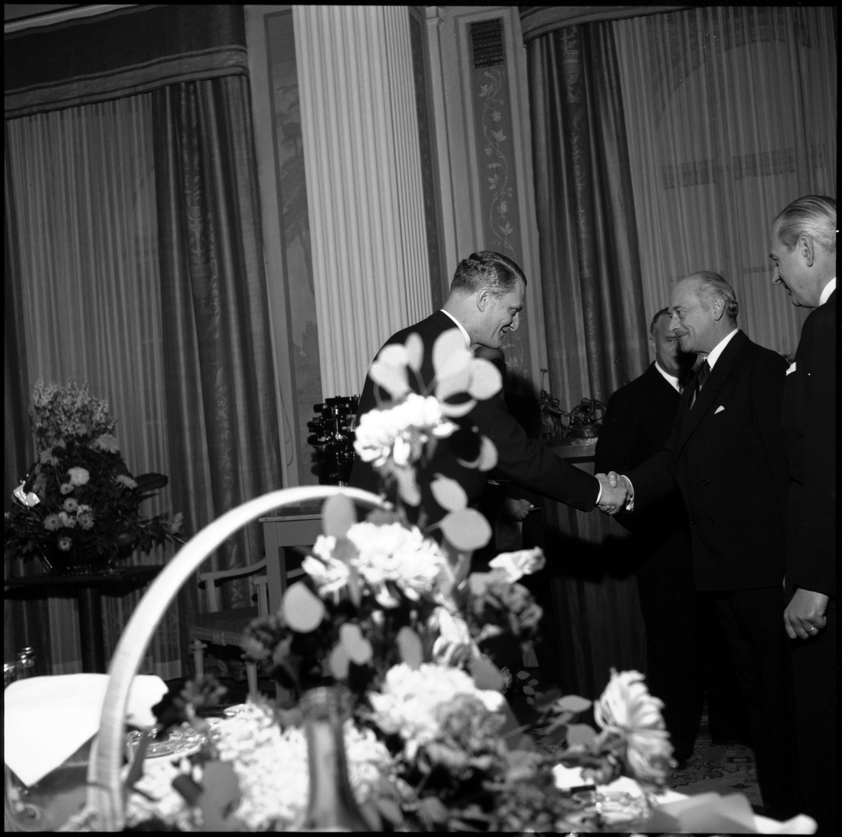 Generaldirektör Erik Upmark tar emot gåvor från TTF, STF, Kalmar Verkstad Motala Verkstad, AB.